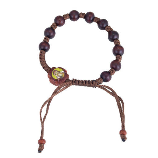 Adjustable wooden bead bracelet crafted for everyday devotional wear. Features dark wooden beads and a small wooden cross with an icon of the Thetokos. The sliding knot closure allows for an adjustable fit, ranging from approximately 6 cm (smallest size) to 9 cm (largest size), making it comfortable for various wrist sizes.